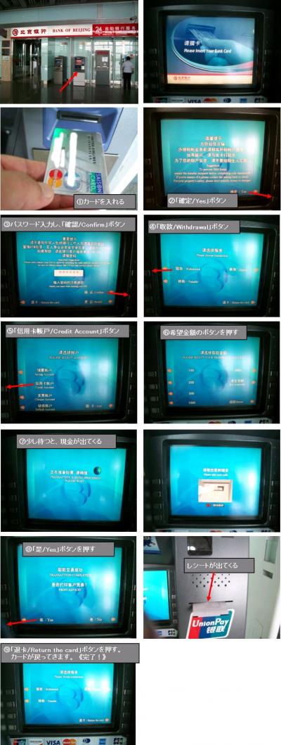 このATMも両方使ったことがあります(2010.02)。少し表示の単語が違う部分がありましたが、北京銀行のと使い方はほぼ同様です。