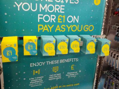 ヒースロー空港第5ターミナルの到着階のWHSmithで、eeの1ポンドSIMを売っていました。
